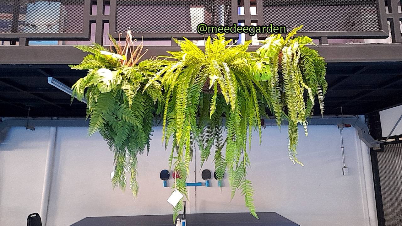 กระเช้าเฟิร์นปลอม หรือต้นเฟิร์นปลอม มีหลายแบบหลายขนาดให้เลือกใช้ได้ตามความเหมาะสมกับความสูงบริเวณที่ต้องการแขวน